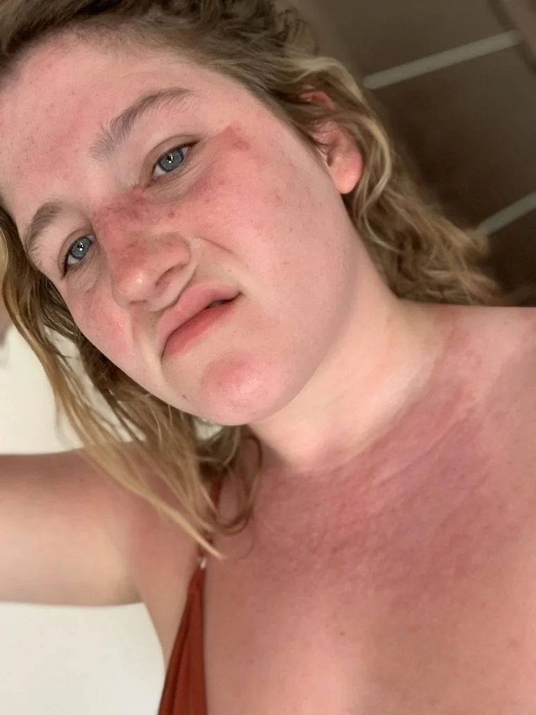 The inflamed skin, the raised welts. You can see that even my eyes are red, blistering, and irritated. I did nothing to deserve this happening to my body. I was simply born. Yet there are people who are allowed to profit off of doing this to me?